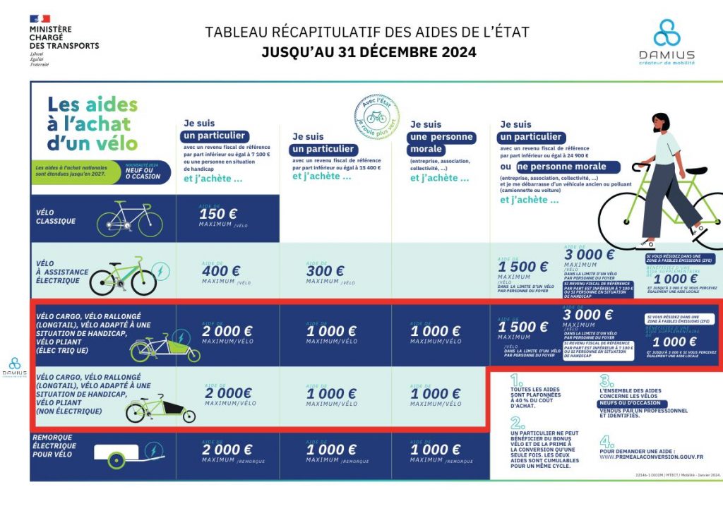 Le bonus écologique, destiné à encourager l’achat de tricycles électriques et non électriques, est prolongé jusqu’à la fin de l’année 2024. Chez Damius, nous sommes ravis de vous informer que nos tricycles sont éligibles à cette aide financière, qui peut être cumulée avec d’autres subventions. Découvrez les détails de cette aide et comment vous pouvez en bénéficier.