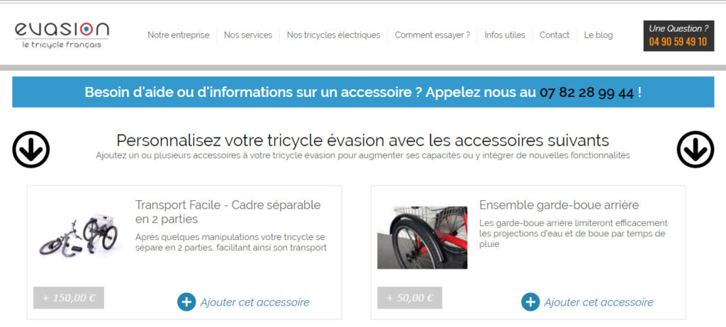 Accédez à nos tricycles depuis le menu principal en cliquant sur « Nos tricycles électriques« .