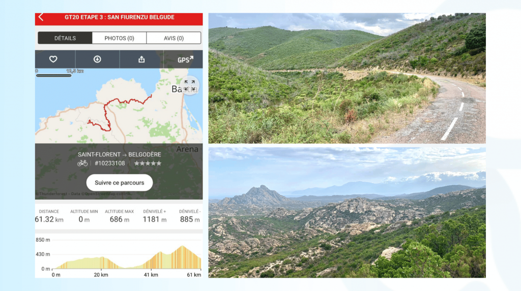 Le GT 20 (La Grande Traversée 20 – « A traversata Maio) est l’un des plus beaux itinéraires vélo d’Europe, et aussi l’un des plus relevé, situé entre mer et montagne, via les plus beaux paysages de corses et un point culminant à près de 1500 mètres d’altitude.