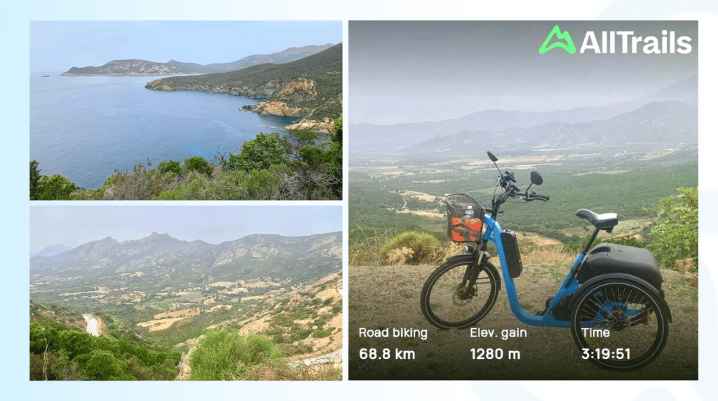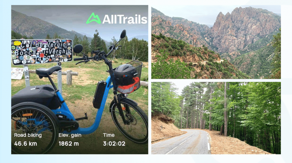 « Col de MARSOLINO, quand tu viens de gravir un col à 20% sur 4 km, tu te dis que même si – avec bonheur – tu as déjà parcouru + de 20 000 km avec le tricycle EVASION de DAMIUS, tu constates que ce modèle SUPRÊME est vraiment un phénomène ! Bien sûr tu sais où sont tes jambes, mais le rythme cardiaque est top ! »