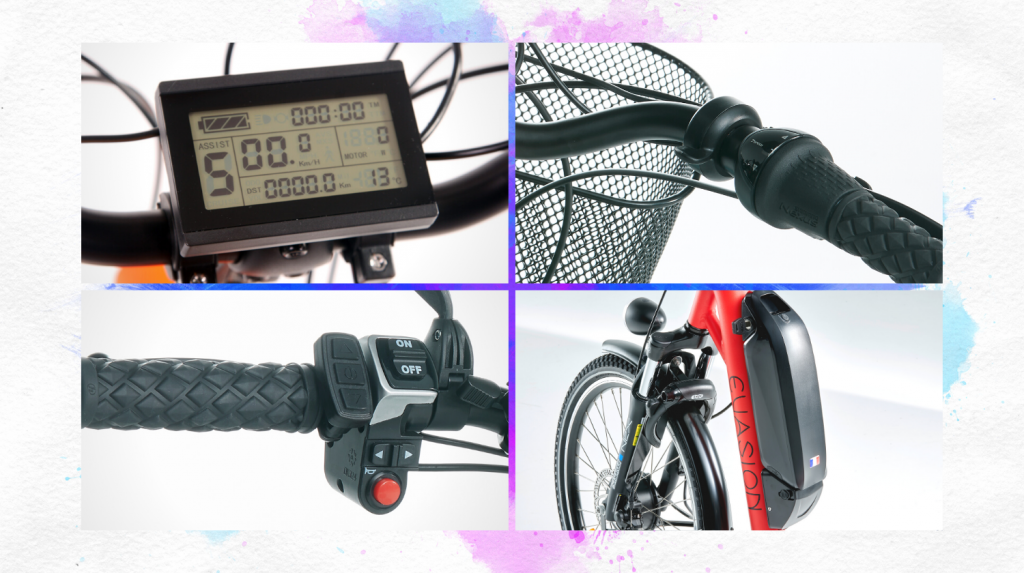 Le développement d’une assistance électrique spécifique au tricycle fut l’une de nos priorités lors de la phase de conception. Au final, l’assistance du tricycle Evasion allie douceur, progressivité et puissance quand il le faut, lors de pentes imposantes ou bien de lourdes charges par exemple. Pour visualiser les différents paramètres, un grand écran central LCD est présent tout comme une commande déportée permettant de sélectionner le niveau d’assistance désiré sans lâcher le guidon.