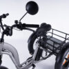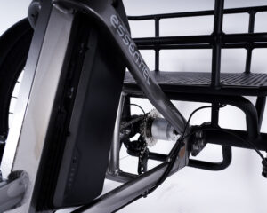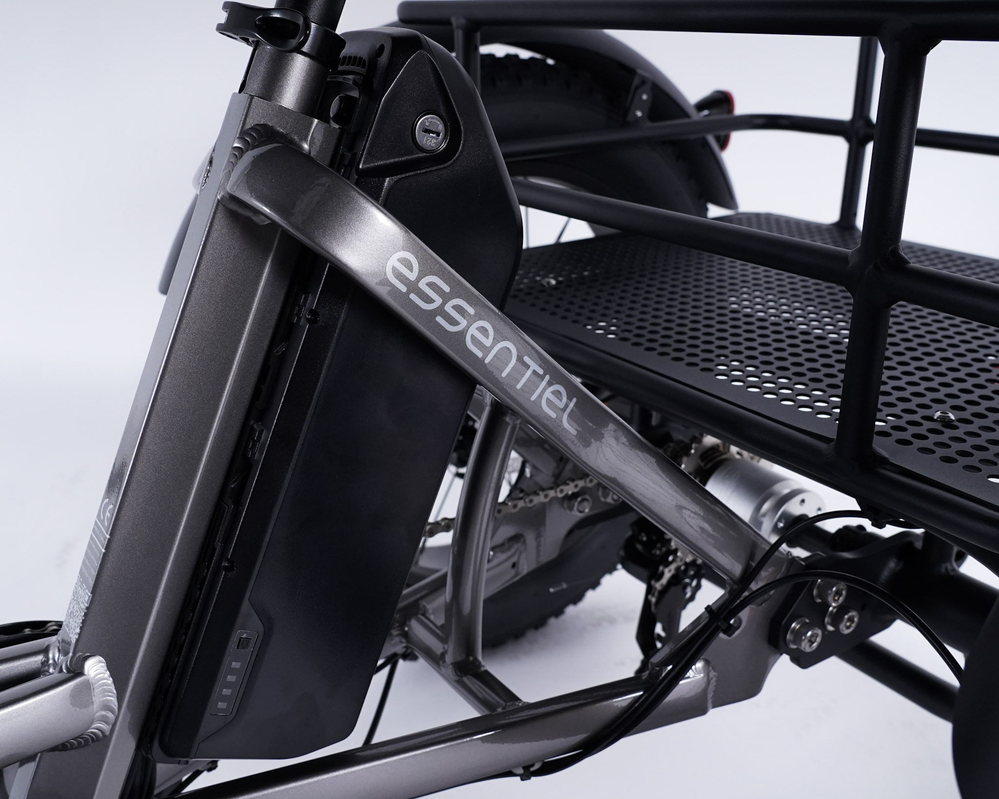 La batterie 36V et 360Wh d’origine vous assistera pour des trajets d’environ 40km mais des batteries optionnelles avec plus de capacité sont proposées en 540Wh et même 720Wh si vous souhaitez doubler l’autonomie ! Le tricycle Essentiel dispose d’une gâchette d’accélérateur d’aide au démarrage permettant d’avancer sans pédaler jusqu’à 6km/h ainsi que d’un grand écran couleur bien lisible. Il est équipé d’un dérailleur 7 vitesses facile à utiliser et fiable, d’un rétroviseur et de garde-boue enveloppant pour rouler même s’il pleut et il est même équipé d’un feu stop qui s’allume et clignote lorsque vous freinez !