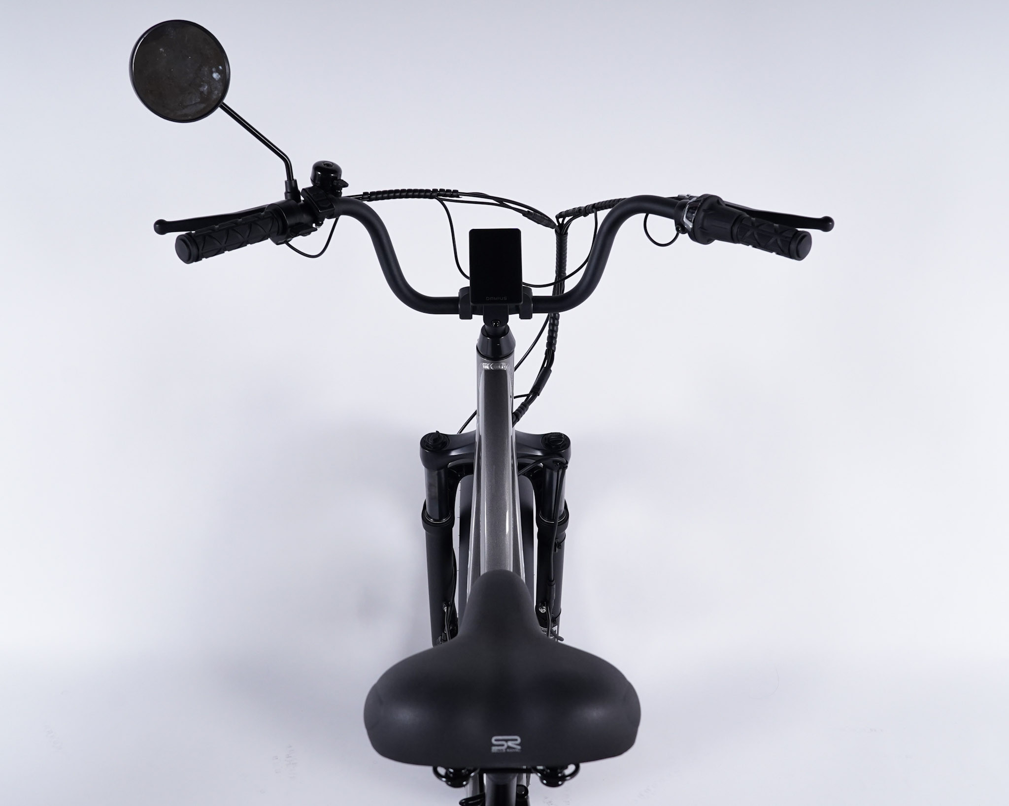 La couleur est elle aussi unique, il s’agit d’un magnifique gris métallisé mat du plus bel effet sur le cadre tandis que l’ensemble des composants est peint en noir !