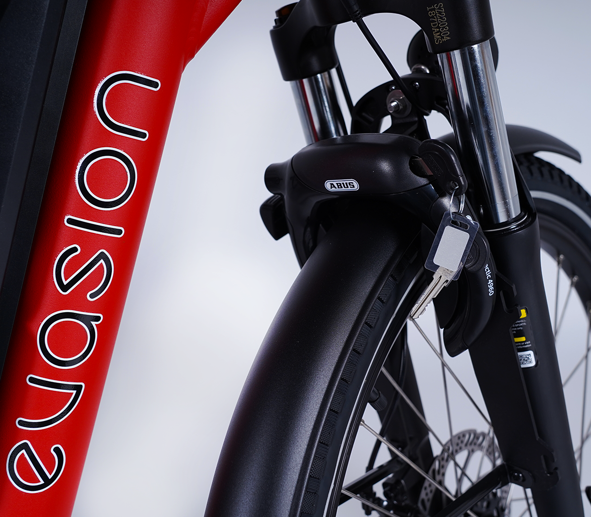 Et puisque c’est un Evasion et que c’est aussi un Damius, vous retrouverez sur ce modèle un enjambement ultra bas afin de faciliter l’accès et il est équipé d’un grand nombre d’équipements d’origine comme le rétroviseur, l’antivol de cadre permettant de bloquer la roue avant, le système d’éclairage complet alimenté par la batterie incluant des feux stop et des feux clignotant, en plus des phares et klaxon ! Les pneus équipant nos modèles sont ni trop gros ni trop fins, ils bénéficient d’une excellente adhérence et d’un confort optimal.